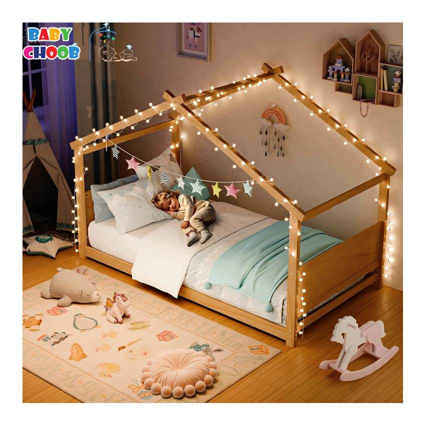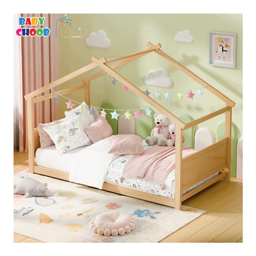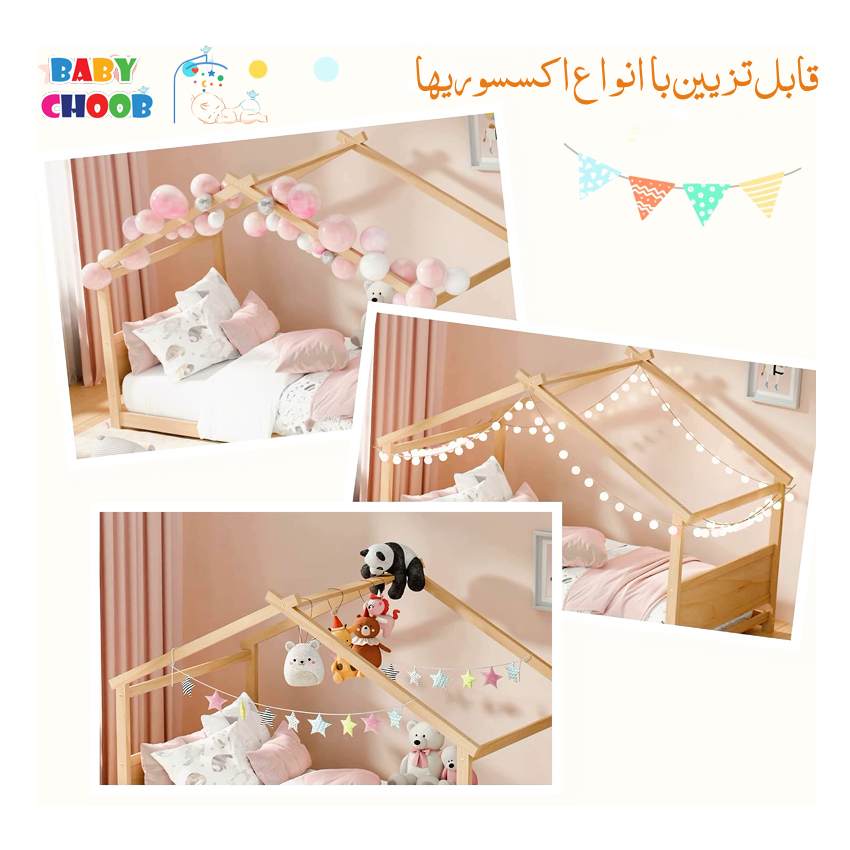 تخت مونته سوری کودک طرح خانه مدل کلبه آرامش برای خانوادههایی پیشنهاد میشود که به ترکیب ایمنی، زیبایی مینیمال و رویکرد مونتهسوری اهمیت میدهند. فریم چوبی و قسمت نرم لبهها، مطابق با استانداردهای ایمنی اتاق کودک است. ارتفاع نزدیک به زمین مطابق اصول مونتهسوری است؛ دسترسی مستقل کودک را فراهم کرده و ریسک سقوط را کاهش میدهد. فرم خانهای و کلبه مانند این تخت علاوهبر جلوهی بصری، بستر بازیهای نقشآفرینی و تقویت تخیل را در اتاق کودک ایجاد میکند. زیرسازی تخت با ۸ لت چوبی تقویتی انجام شده است؛ بنابراین نیازی به باکساسپرینگ وجود ندارد و تشک مستقیماً روی لتها قرار میگیرد. این چیدمان، دو مزیت کلیدی دارد: تهویهی مناسب تشک و توزیع یکنواخت فشار برای افزایش دوام. فرایند مونتاژ این مدل بسیار ساده، سریع و دقیق میباشد.