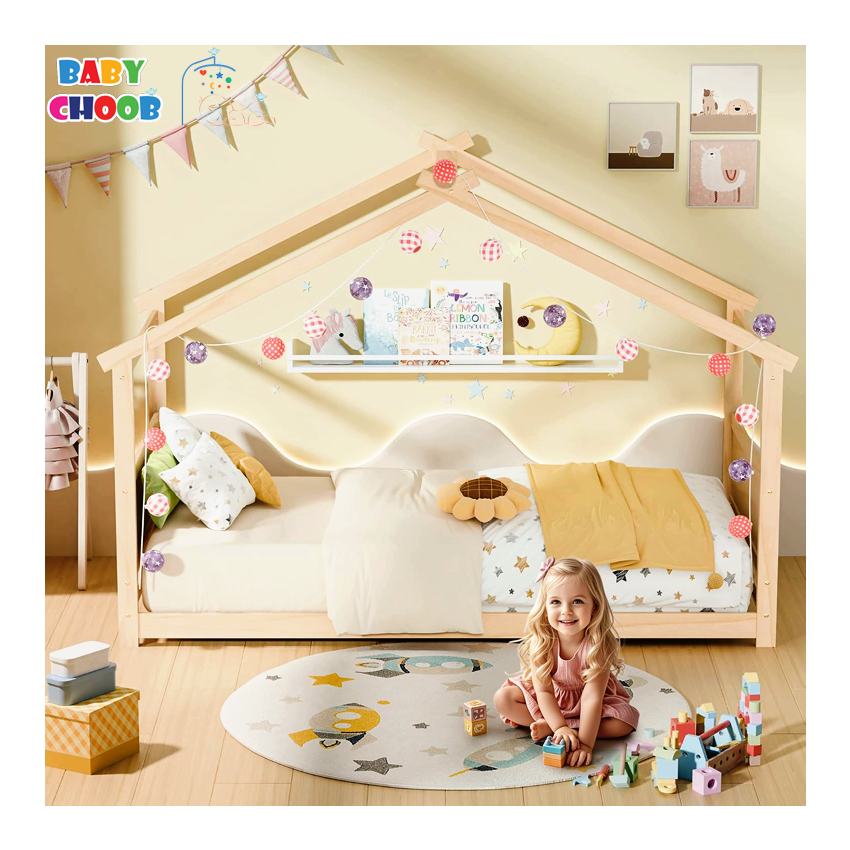 - فریم چوبی با لبههای نرم موجب دوام بالا، حس طبیعی و ایمنی سازگار با فضای کودک.